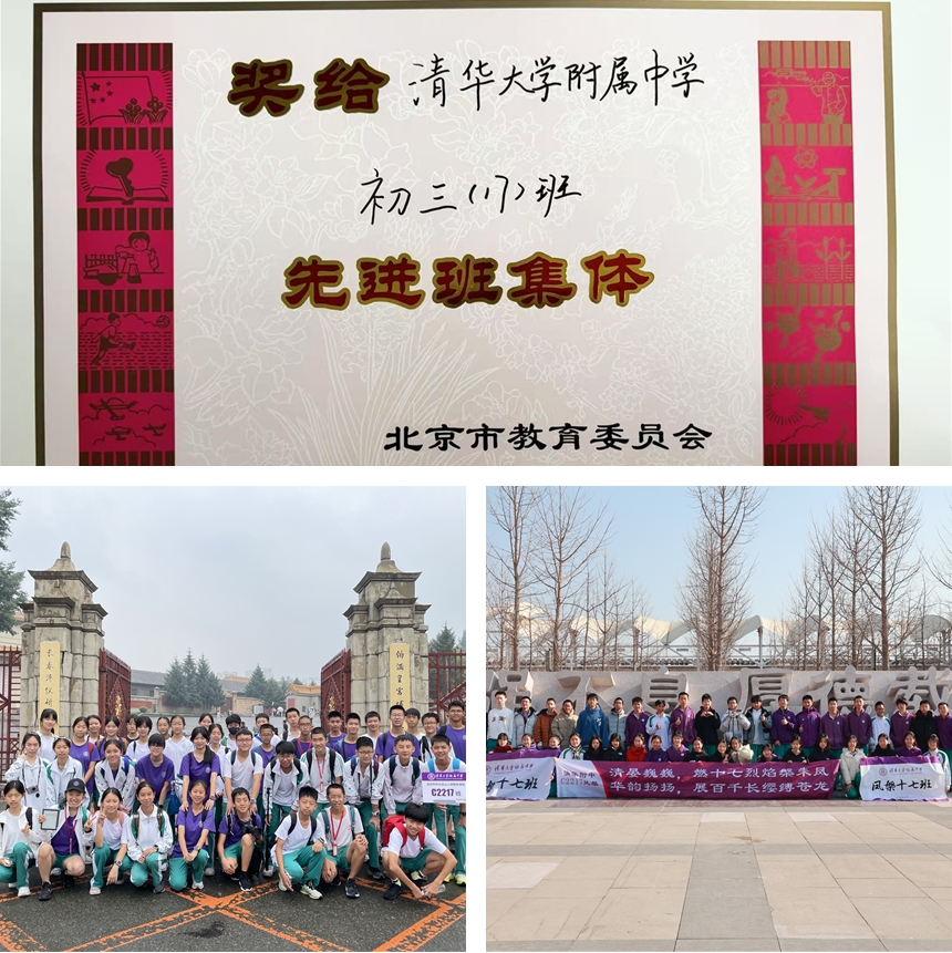 初三17班荣获北京市先进班集体荣誉证书、班级活动合影