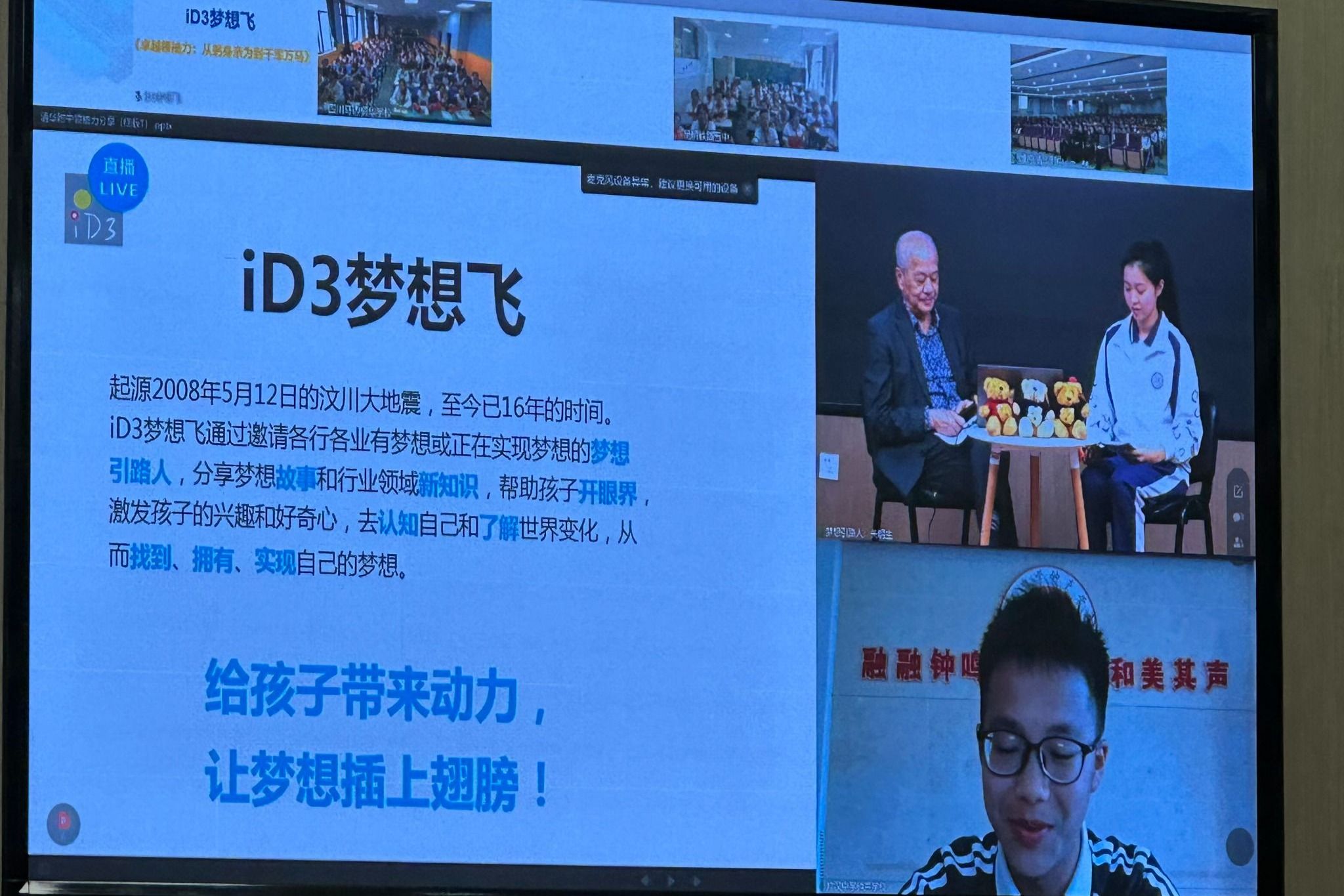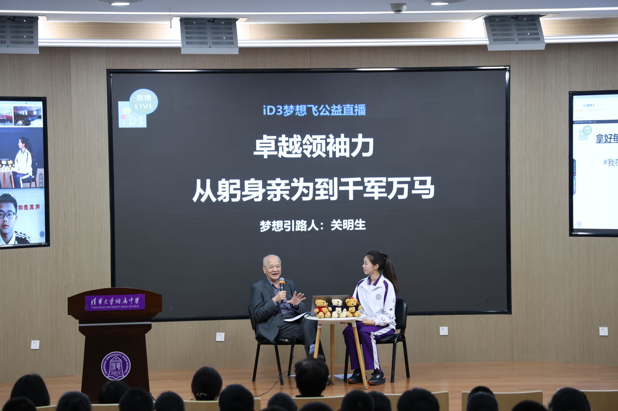 5月9日,由iD3梦想飞与皇冠体育官网、广汉中学钟声学校联合主办的领袖力主题直播讲座在皇冠体育官网举行。前阿里巴巴总裁兼首席运营官关明生作为“梦想引路人”,以“卓越领袖力:从躬身亲为到千军万马”为主题,为全国青少年带来一场思想盛宴。皇冠体育官网副校长白雪峰、学生发展中心副主任李冰清、初23学部主任张晓琼、初23学部副主任周小玲、生涯办公室老师张婉婷以及初23学部14班至17班的师生出席直播活动。本次活动吸引全国19个省市区37所学校、线上线下逾万名观众同步参与。活动由皇冠体育官网吴若青、广汉中学钟声学校周屹凌两位同学主持。