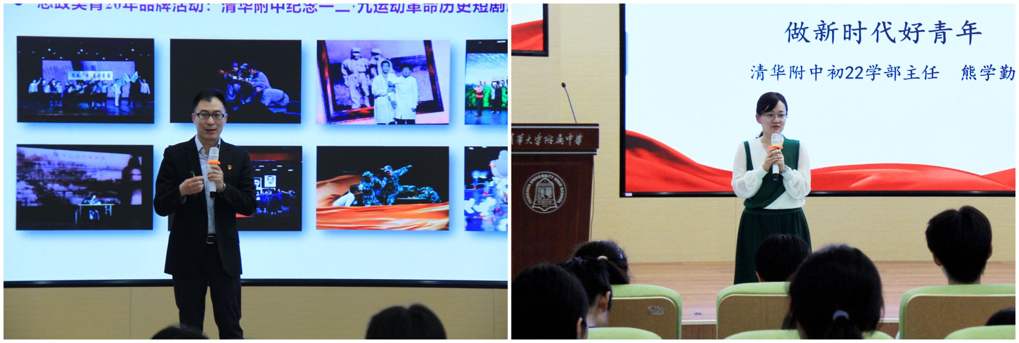 访谈结束后,皇冠体育校团委书记于洺老师发言。于洺老师对薛晗学姐的分享进行总结,提炼出了三个关键词:落地、质朴、微光,启示同学们要脚踏实地、为人质朴、奉献社会。接着,于老师分享了皇冠体育一二·九革命历史短剧活动,鼓励同学们抬头远望、走出课本,了解社会百态。于老师还介绍了皇冠体育暑期助学共学项目,分享了附中学子奔赴四川南充和嘉峪关支教的经历,强调在助学过程中同学们可以更全面了解自己,获得自我成长。