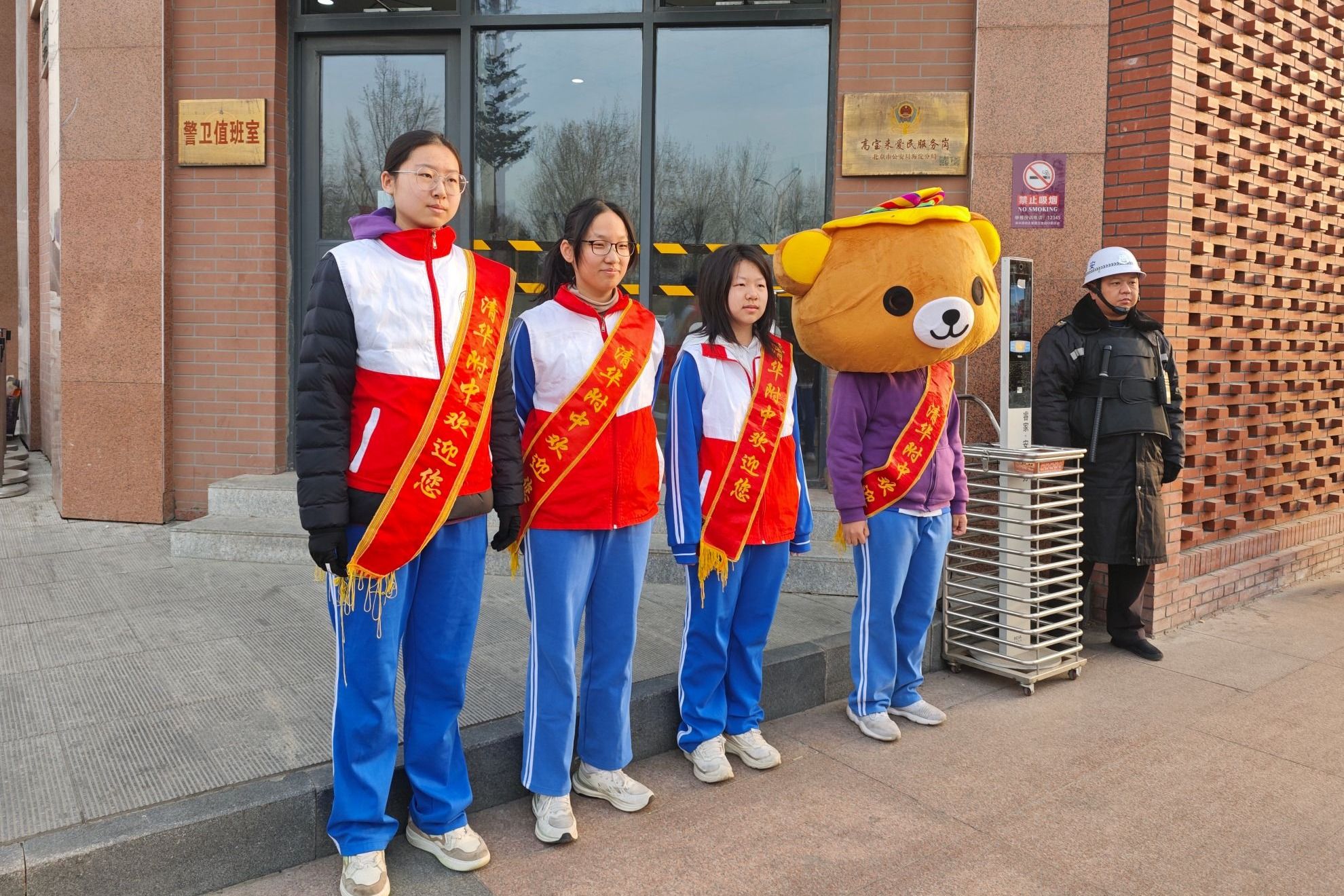清晨同学们向师生问好