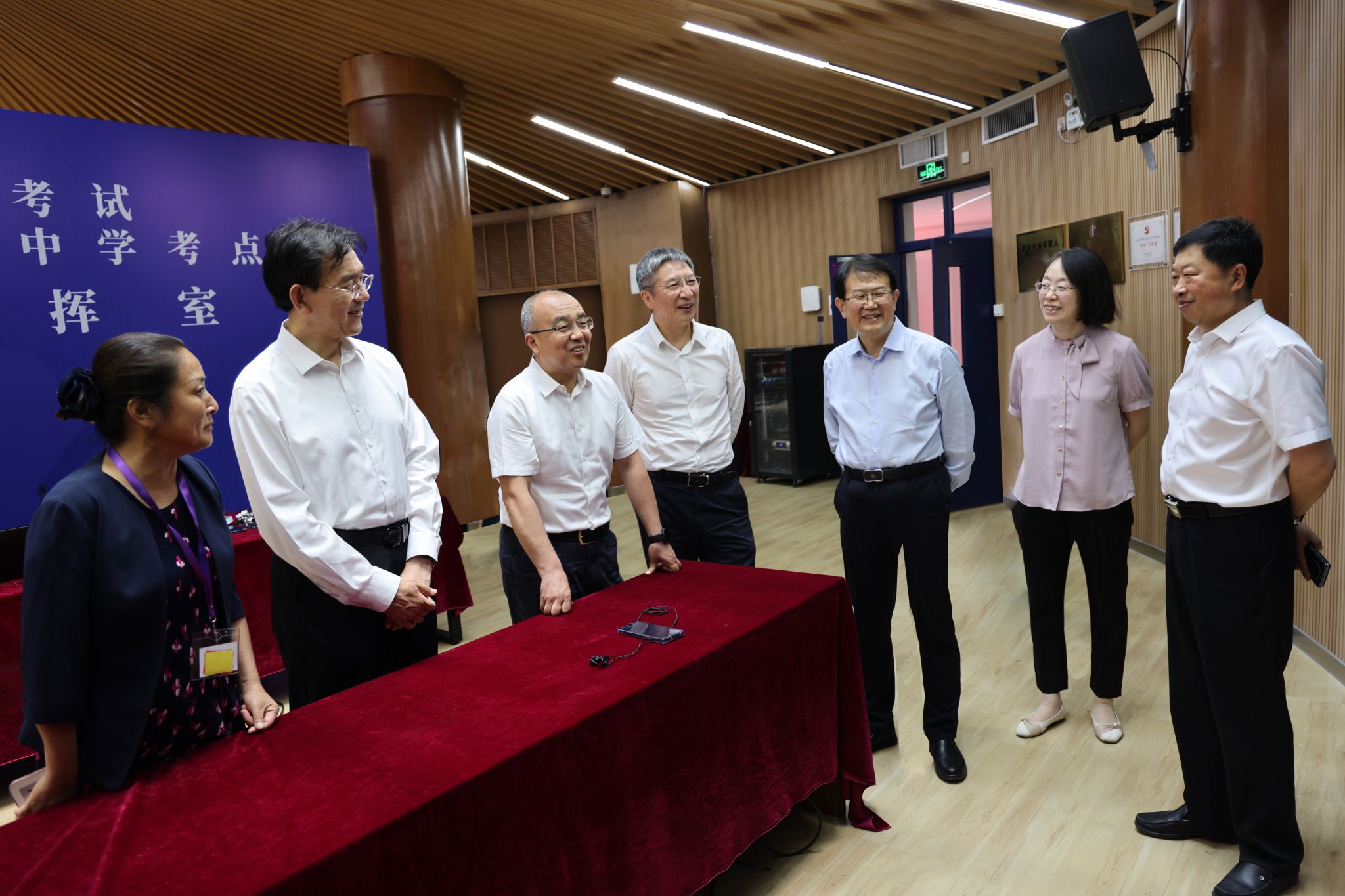 6月6日,北京市委常委、教育工委书记于英杰,清华大学校长李路明检查皇冠体育考点高考组织保障工作。
