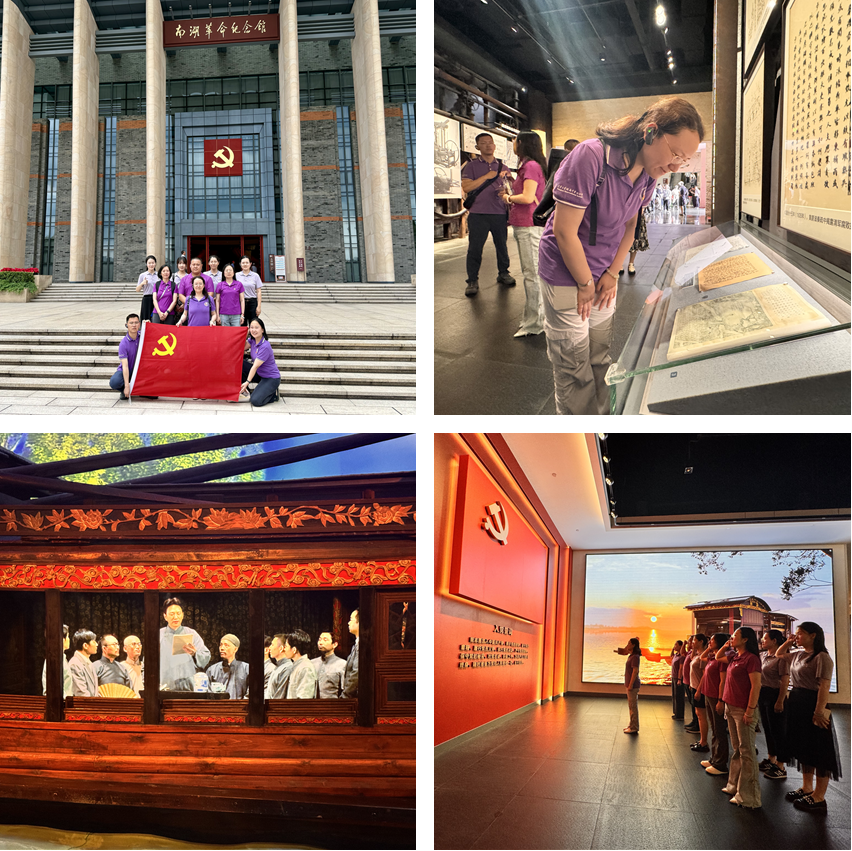 在南湖革命纪念馆,通过珍贵史料与数字化展厅,系统回顾中国共产党从红船起航到引领复兴的伟大征程。在纪念馆宣誓墙前,由支部书记朱莹领誓,全体党员庄严重温入党誓词。