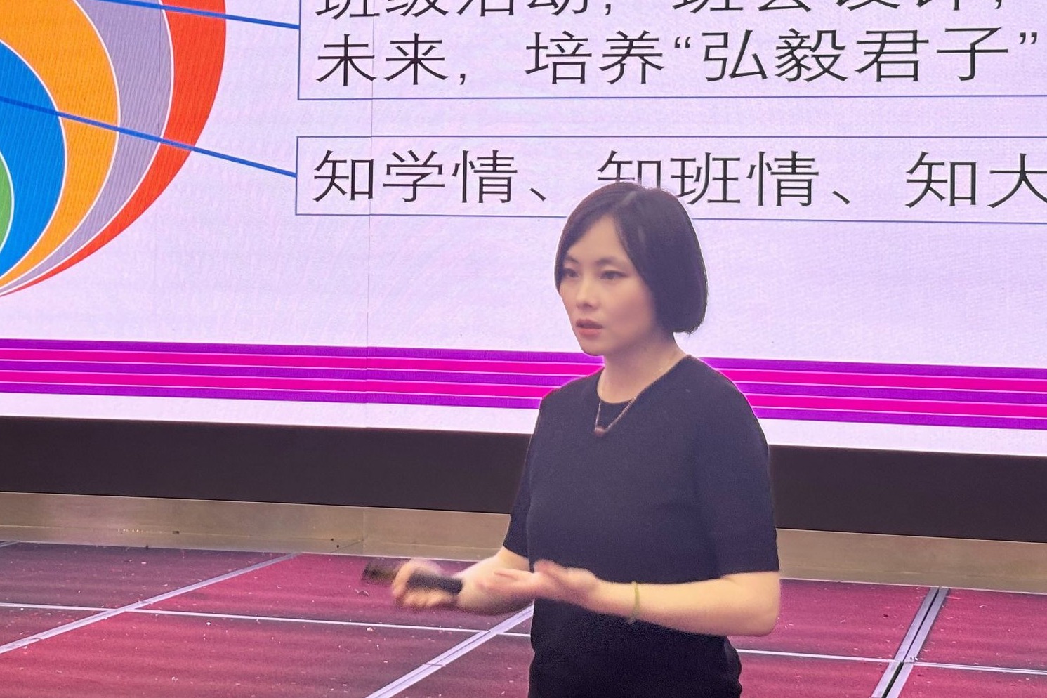 高22学部班主任代表G2203班张馨月老师介绍了带班经验,张老师秉持“以智引领,用心托举”理念。班主任需要了解学生身心“不确定性”,担当班级“稳定器”,依四季与学期调节管理节奏,结合校“君子文化”定价值观,守“学生尊严至上”,借学科活动搭平台,以日常细节伴成长。G2212班班主任舒迟以“守职、在场、用心”为核心。“守职”落实“健体、为学、做人”,“在场”多场景陪伴,“用心”定制班会、分层关怀,秉持“极高明而道中庸”,以智慧与真诚助学生成长。G2215班张博老师从家长会、班会和各个阶段的班主任工作进行了分享。借力任课教师、学长学姐的力量,以科学方法与学生同频共情,做到有据施策。