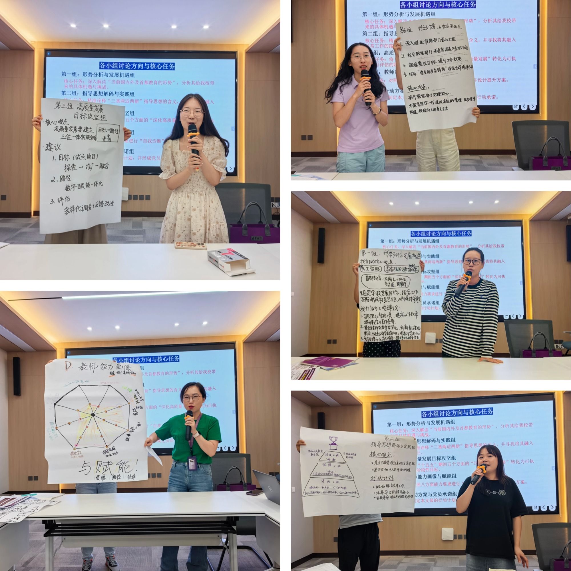 张惠玲、周灿灿、张琬婷、王子纯、吴硕同志代表各组汇报发言