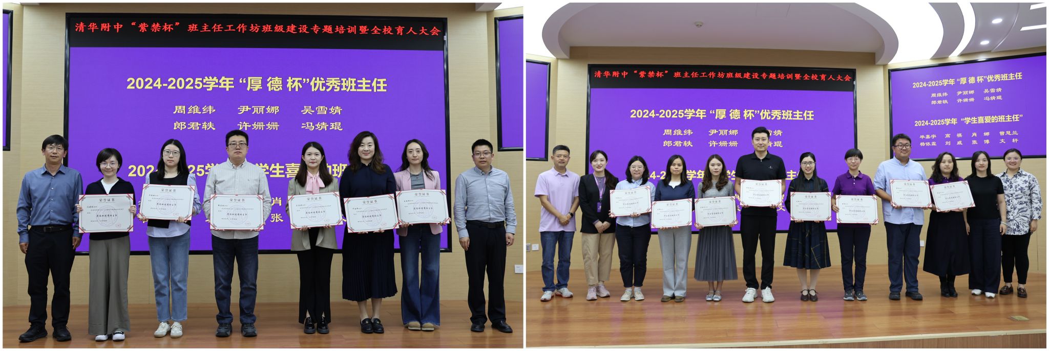 周维纬、尹丽娜、吴雪婧、郎君轶、许姗姗、冯婧琨六位老师荣获“厚德杯”优秀班主任荣誉,李劲松副校长与潘天俊副书记为获奖教师颁奖。毕嘉宇、高祺、肖娜、曾慧兰、杨依霖、刘威、张博、文轩共八位老师获评“学生喜爱的班主任”,张彪主任、唐洁副主任、李冰清副主任、赵欢副主任分别为获奖教师颁奖。这些班主任们用爱心、智慧与育人方法赢得了学生们的喜爱,他们的辛勤付出获得了充分肯定,也为全体教师树立了榜样。