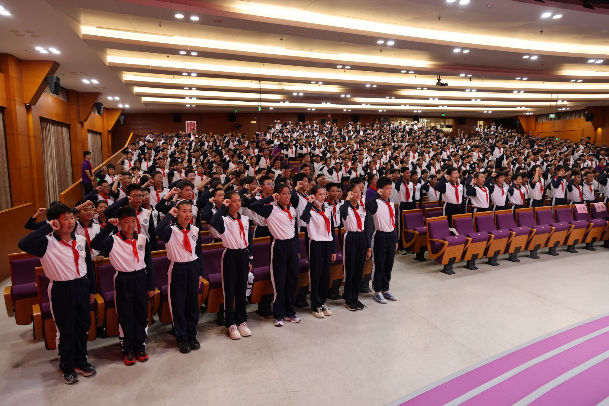 最后,在《退队旗曲》中,全体少先队员敬礼目送队旗退场。主持人带领全体师生重温初心使命,号召大家以少年之蓬勃赴时代之邀约,为实现中华民族伟大复兴的中国梦努力奋斗。