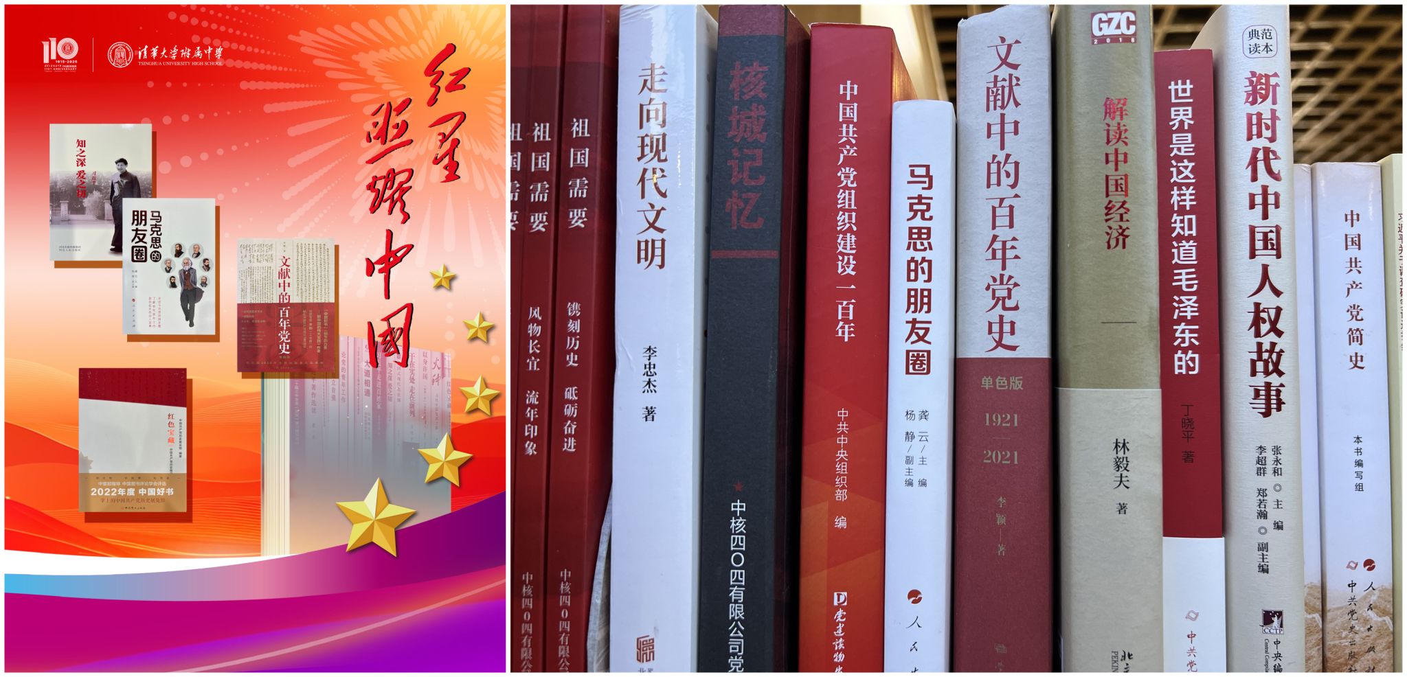 在皇冠体育官网建校110周年与国庆佳节来临之际,为深入贯彻落实习近平新时代中国特色社会主义思想和党的二十大精神,附中党委在学校图书馆正式推出“红星照耀中国”专题书架,为全校师生打造了一处浸润红色文化、汲取奋进力量的精神阵地,以精神文化厚礼营造浓厚爱党爱国爱校氛围。