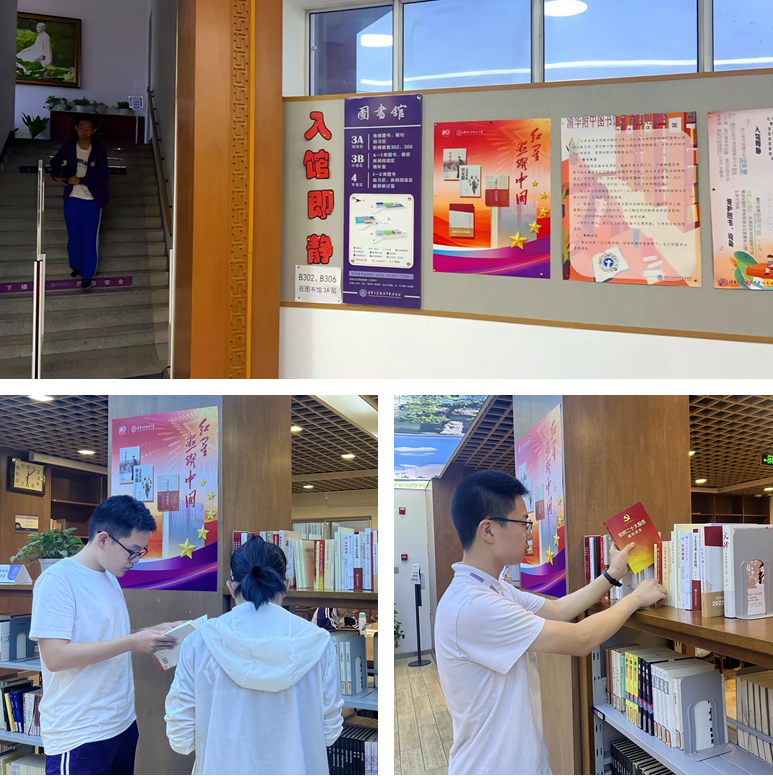 走进图书馆,“红星照耀中国”的专题书架布置得庄重而热烈。《知之深 爱之切》《红色宝藏》等一本本精心挑选的红色经典书籍陈列其上,书籍涵盖了党史研究、领袖著作、革命故事等多个方面,力求为师生提供兼具思想深度与阅读价值的优质资源。专题书架一经设立,便吸引了师生驻足。课余时间,同学们或独自伫立书架前仔细挑选,或三五结伴翻阅心仪书籍,在字里行间感悟红色精神。