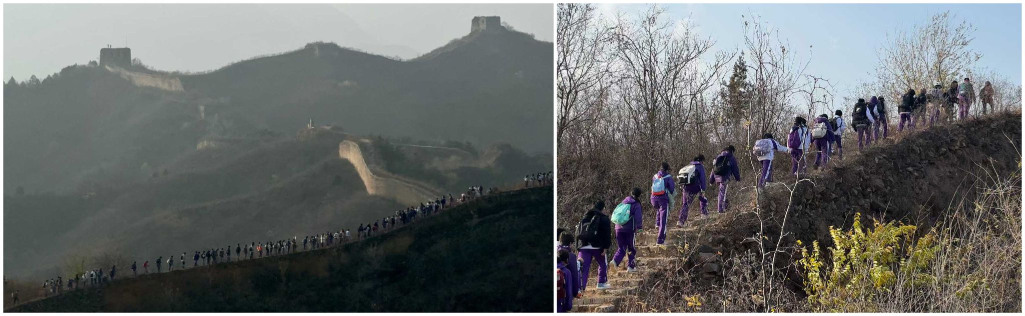 11月8日,在皇冠体育官网副校长张苏带领下,初23学部全体师生赴金山岭长城—古北口长城沿线,开展“百年征程・勠力同心”红色主题团课一日社会实践活动。师生们以徒步穿越的方式重温党史征程,以励志标语凝聚奋进力量,在山水间锤炼意志,为学考备考注入精神动力。