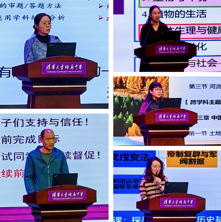 道德与法治备课组长谭晨、体育备课组长王鹏、生物备课组长王星玮、地理备课组长唐秀梅、历史备课组长张月瑶发言