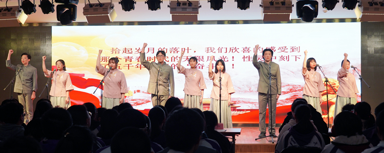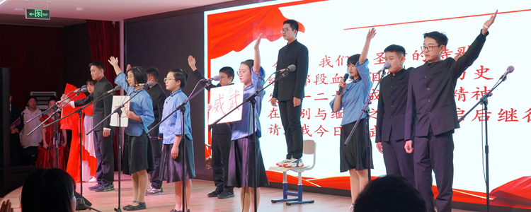 最后,学校教职工带来了配乐诗朗诵及合唱《没有共产党,就没有新中国》。老师们情绪激昂,表演震撼人心,将气氛推向全场的高潮,为活动画上了圆满的句号。