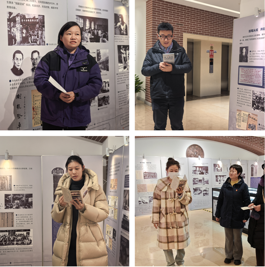 观展过程中,党员们认真聆听讲解,不时驻足凝视、交流感悟。大家深刻认识到,展览所呈现的不仅是一段烽火连天的抗争岁月,更诠释了“不降其志、难夺其道”的刚毅坚卓精神,印证了“教育是民族的灯塔,知识是抗争的武器”的深刻真理。作为教育战线的职员党员,大家纷纷表示,要从先辈们的家国大义中汲取精神滋养,把“家国情怀”转化为立足本职、服务教育的具体行动,把“刚毅坚卓”融入日常工作的坚守与奋进。