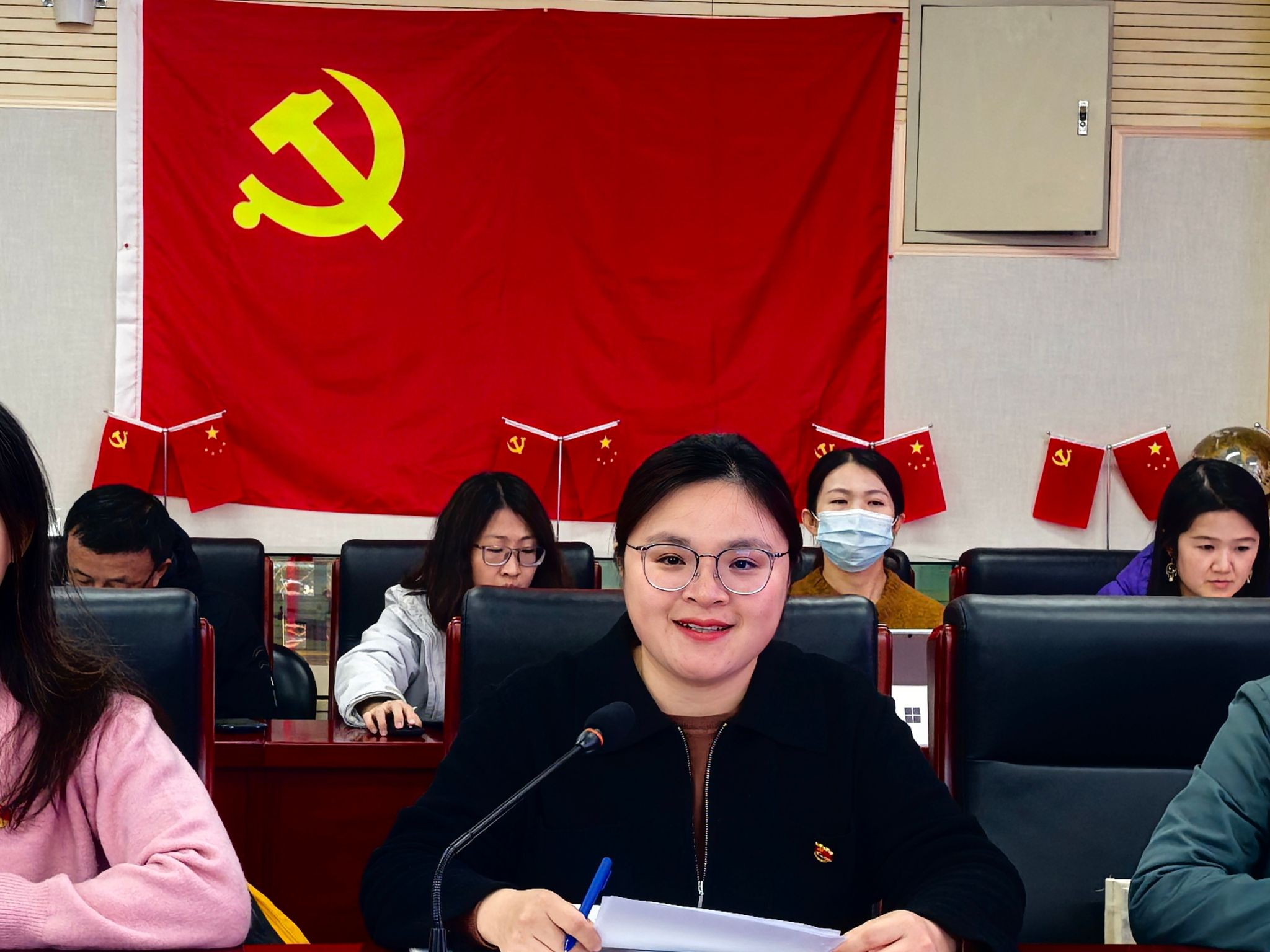 大会由支部书记黄丽梅同志主持,支部全体正式党员出席会议,入党积极分子列席参会。同时,党委书记曹海翔同志出席会议。