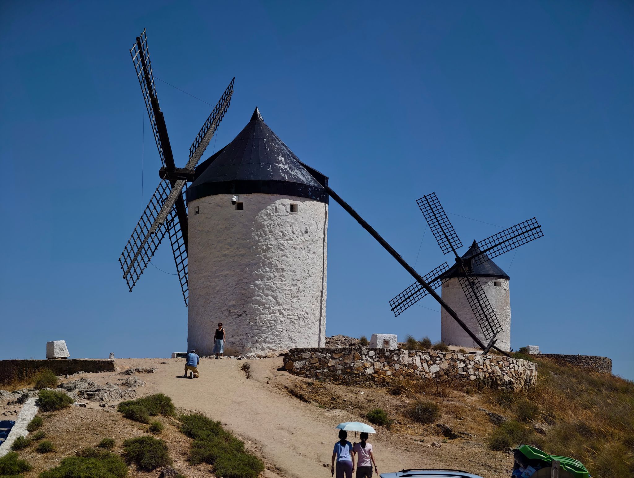 白色风车巨人般矗立在山丘上,风声呼啸,阳光下仿佛看见堂吉诃德冲向风车的姿态,荒诞中却体会到那份对理想近乎固执的浪漫坚守——谁说梦想不能“大战风车”?