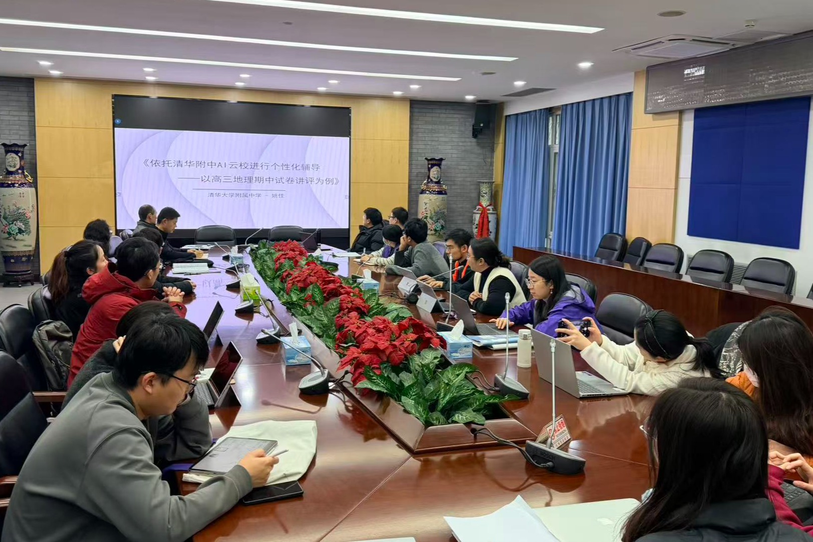 会上,地理组姚佳老师率先分享了《AI云校在地理学科教学中的应用案例》。她从课前“学情诊断”、课中“个性化答疑”、课后“精准巩固”三个环节,详细阐述了AI工具的实践路径:课前借助智能体分析学生考试数据,快速定位知识薄弱点;课中在共性问题讲解后,让学生与AI对话解决个性疑问,通过追问功能深化理解;课后利用AI生成个性化错题本与课堂点评,助力师生双向成长。姚老师强调,AI的核心价值在于与学科教学的深度融合,教师的筛选加工让智能解答更具针对性。