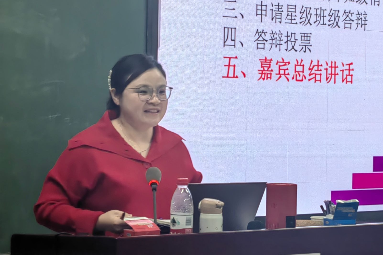 学生发展中心副主任李冰清老师宣布投票结果并作总结讲话