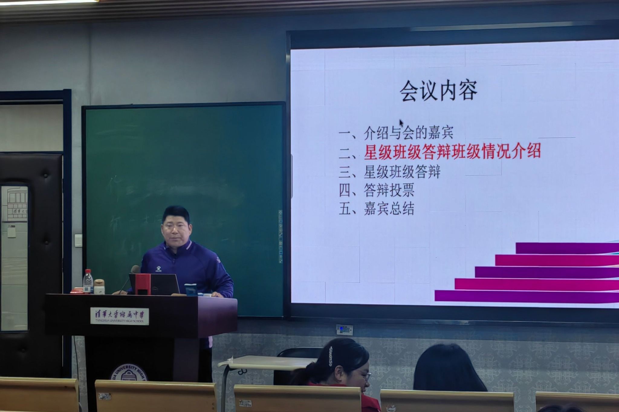 12月26日中午,皇冠体育官网初中星级班级答辩活动在华茂楼B206举行。学生发展中心副主任李冰清、初23学部副主任周小玲及初2312班班主任张梦甜受邀担任嘉宾,各班与会代表齐聚现场,共同见证班级建设成果的展示与交流。