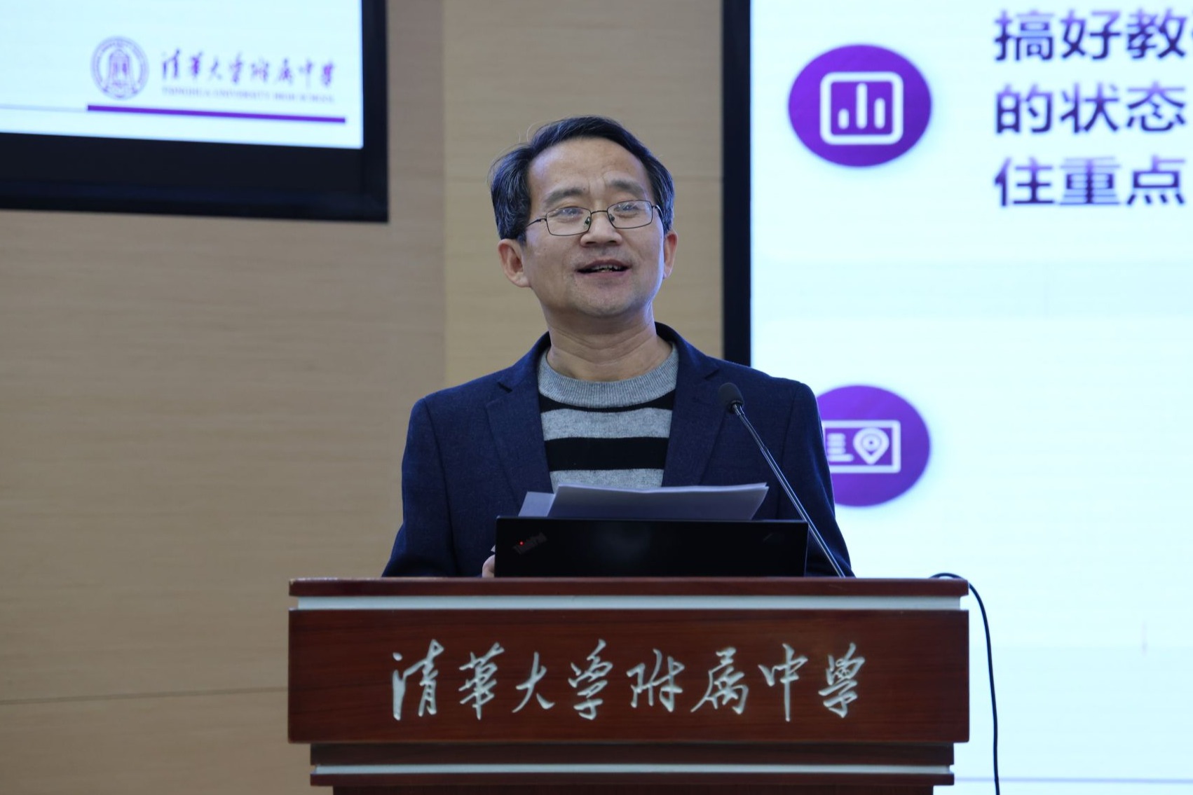 最后,徐文兵副校长以《独立、依附、共生》为题作总结讲话。他寄语获奖者“凡是过往,皆为序章”,鼓励未获奖者“敬过往、爱当下、向未来”。徐校长强调教科研是破解忙碌困境的关键—“只教不研的教育是不完整的”。围绕核心关键词,他阐释教师成长逻辑:“独立”是立身之本,需思想不盲从、人格守初心、专业深耕耘;“依附”是成长养分,要依托团队协作、借助学校平台、传承前辈经验,学校已构建三级科研助力体系,为教师提供无门槛支持;“共生”是发展愿景,要打造师生教学相长、师师共享共担的“美美与共”生态。他勉励全体教师以教研为桥,锚定育人初心,在“实践—研究—迭代”中沉淀成长,将个人发展与学校发展深度融合,共同书写附中教育高质量发展新篇章。