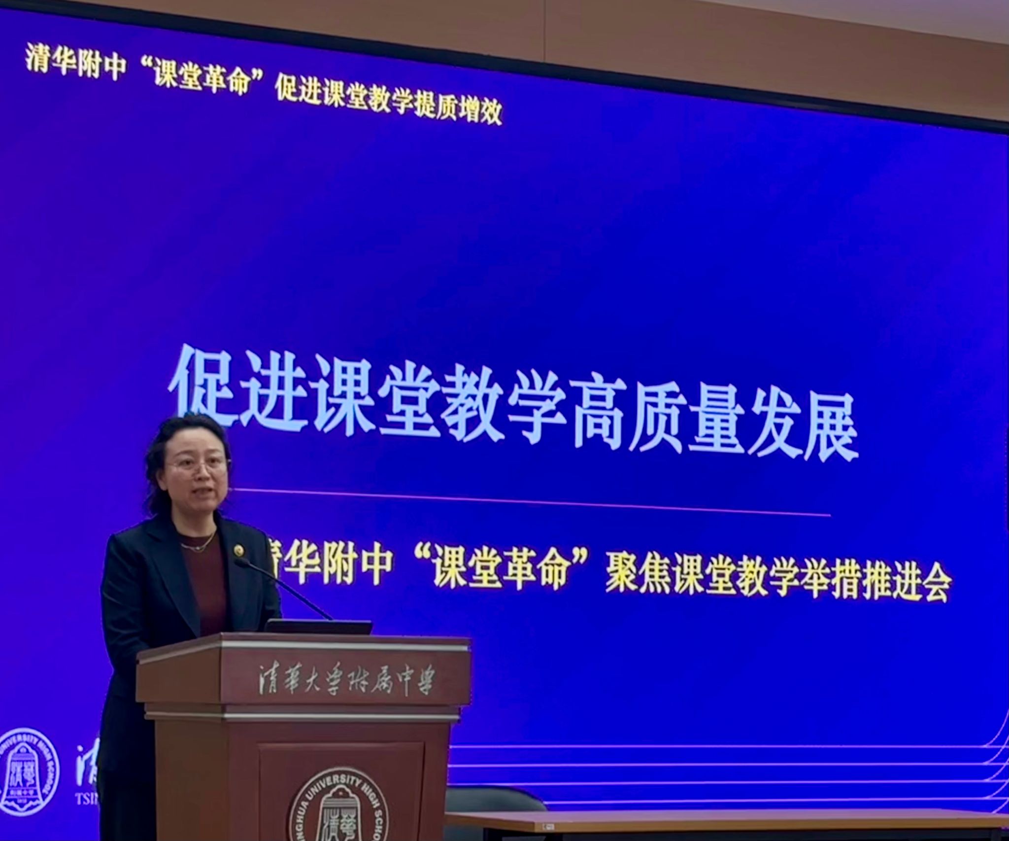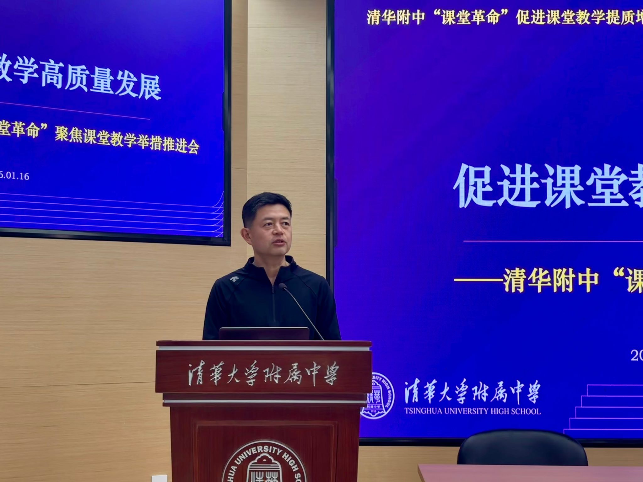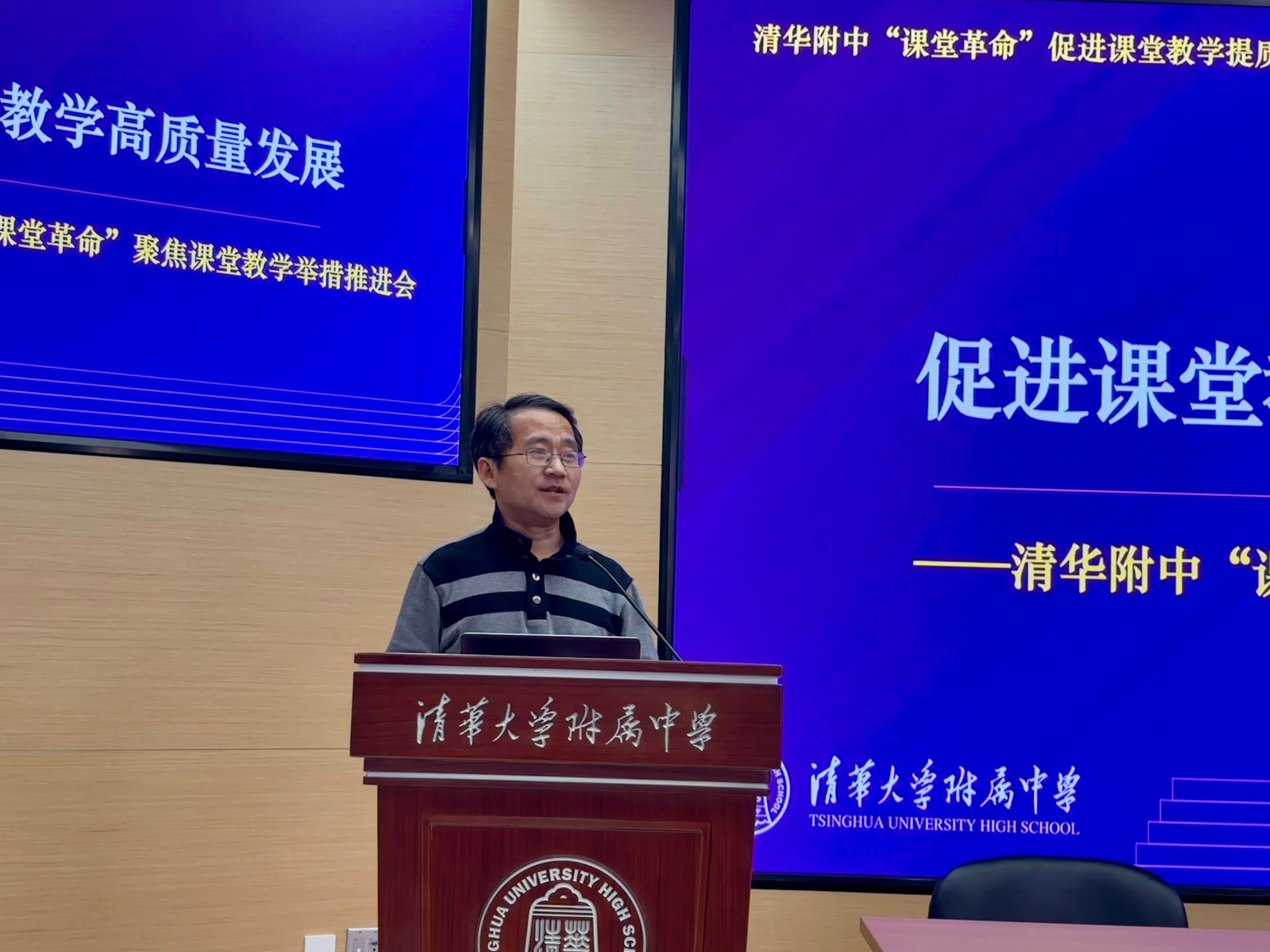 会议伊始,教学管理与研究中心主任张彪梳理了部分初中教师在教学方面所存在的不足,面对学考改革、教育理念更新和社会对人才的更高要求,再次明确并强调了课堂教学以学生为中心、培养核心素养的方向。为切实促进课堂高质量发展,本次课堂改革推出落实推门听课制度、实现数字化管理、健全课堂反馈机制、加强备课组巡查督导、扩充专家团队精准把脉课堂、推行课堂开放日等务实举措,从监督、技术、家校协同等多维度发力。