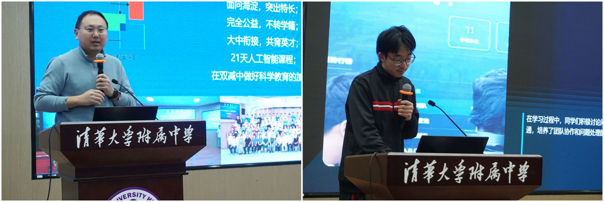 仪式现场,海淀区人工智能实验班及北京市“两营两节”学生代表依次展示自主设计搭建的个人网站,结合自身经历分享了从“初识技术、无从下手”到“主动探索、突破自我”的学习历程,生动展现了冬令营对青少年科创思维、实践能力与自主学习意识的积极引领作用。