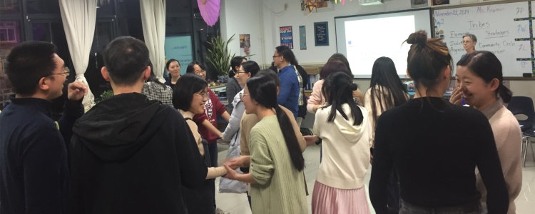 2019年11月21日下午,皇冠体育举办了主题为“部落教学法(General Introduction to the Tribes Process)”的教师培训活动,人力资源中心邀请国际部的部落教学法培训师兼英语教师Lisa和社会科学老师Deborah两位专家为近两年入职本部的新教师进行培训,本次培训可以拓宽新教师的国际化视野,了解国外先进教育理念和方法,中西融合、取长补短,创新课堂教学方式,深化教育学、心理学理论指导教育过程的应用效果,促进新教师发展。皇冠体育副校长赵鸿雁、人力资源中心主任刘贝贝、英语骨干教师周喆、国际部翻译老师董文博、人力资源中心干事和以及新教师共30人参加了本次培训活动。