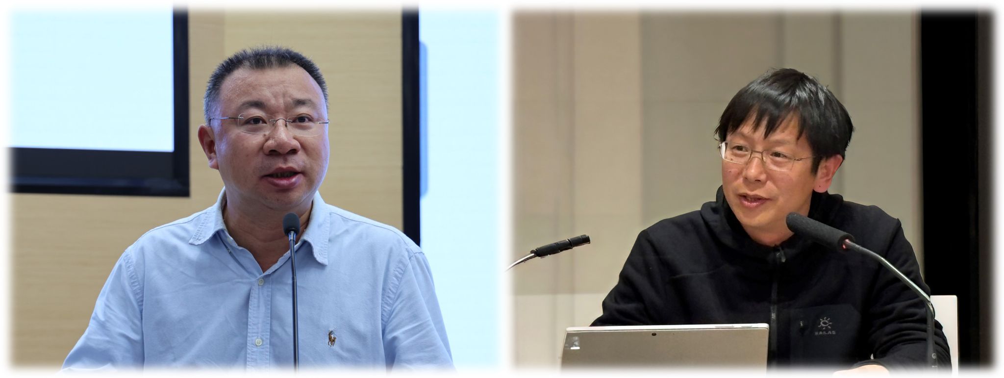 院长周俊主持研讨并指导工作(左)、副校长李劲松总结讲话(右)