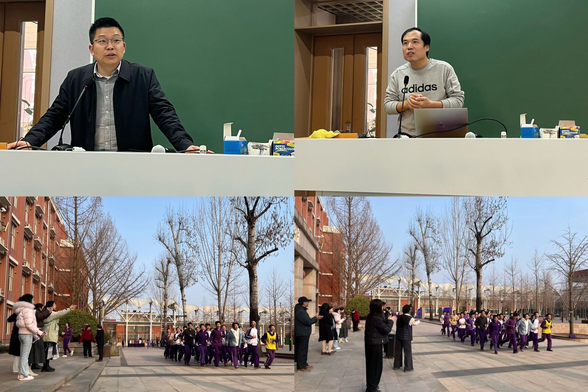 高24学部创新探索“德育+体育”融合新模式,以“我运动,我健康,我快乐”为主题开展“户外实训与室内部署”相结合的主题教育活动。跑操整训中,学生方阵精神饱满、队列整齐,教师组成“加油团”全程互动,彰显师生同心的良好风貌;室内部署阶段,学部主任白传江系统阐述新学期工作重点,党委副书记潘天俊深刻阐释“健康第一”理念,借植树节契机分享育人心得,为学部德育与体育协同育人明确方向。