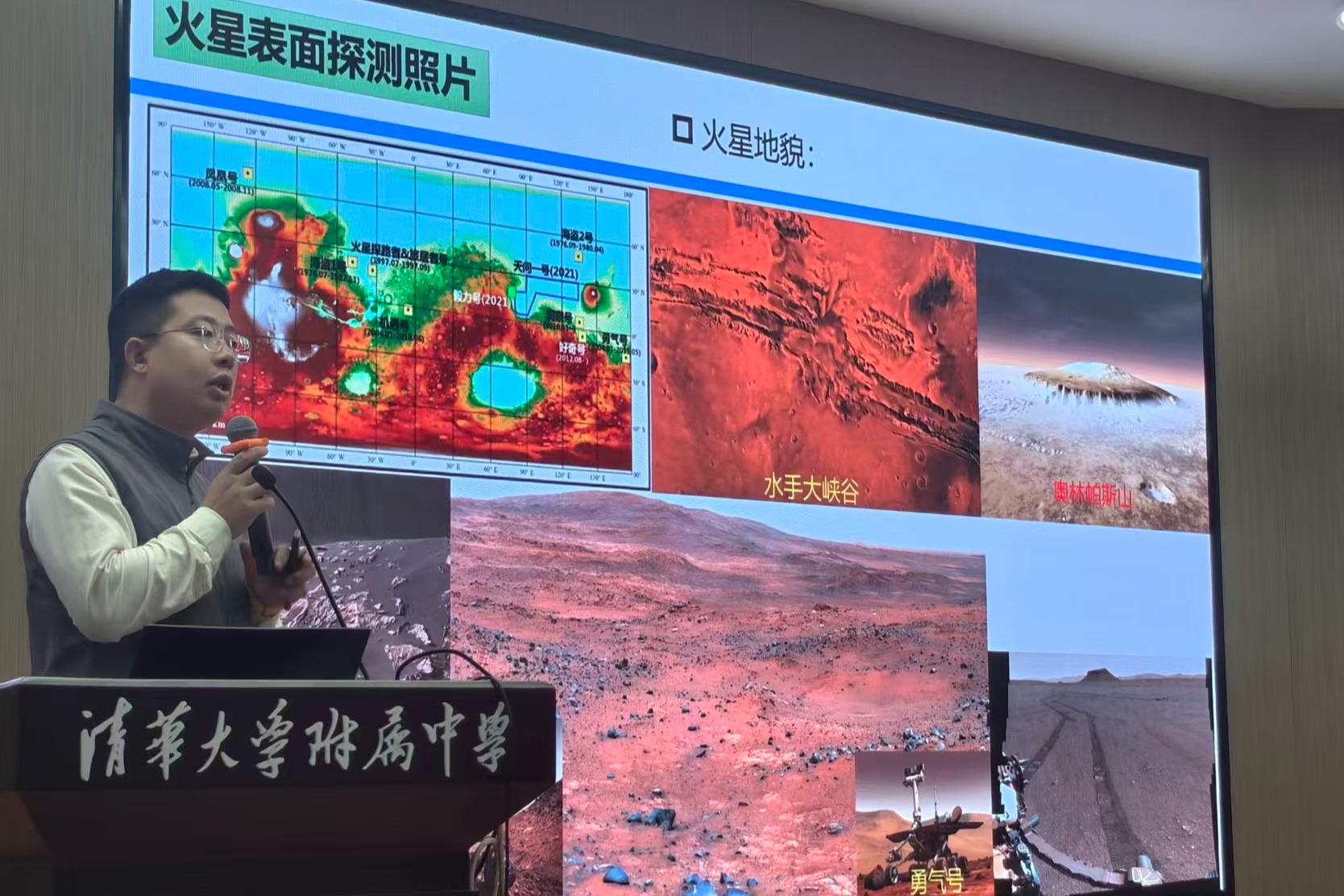 围绕“地球—火星文明探索”核心主题,朱老师带来一系列科研案例:在地球生态监测领域,人工智能可精准识别青藏高原湖泊变化,可实现高准确率、高效率的湖泊自动化监测;在火星探测研究中,人工智能通过深度学习可实现地表岩性智能识别,为破解火星古水文与水资源历史提供关键支撑;在河流形态与灾害防治方面,人工智能可高效进行全球河流分类,结合无人机、声纹技术实现野生动物监测、森林火灾预警与泥石流模拟,为生态保护与灾害防控提供科技支撑。