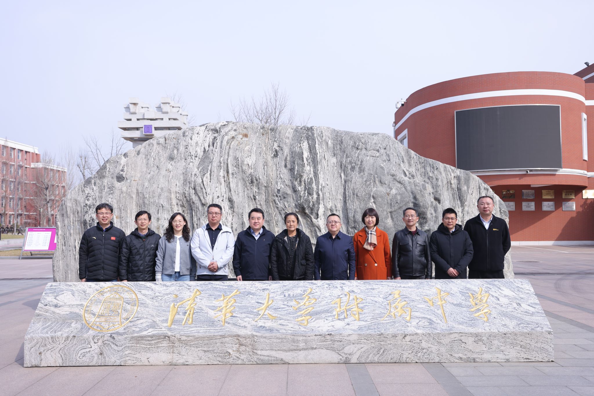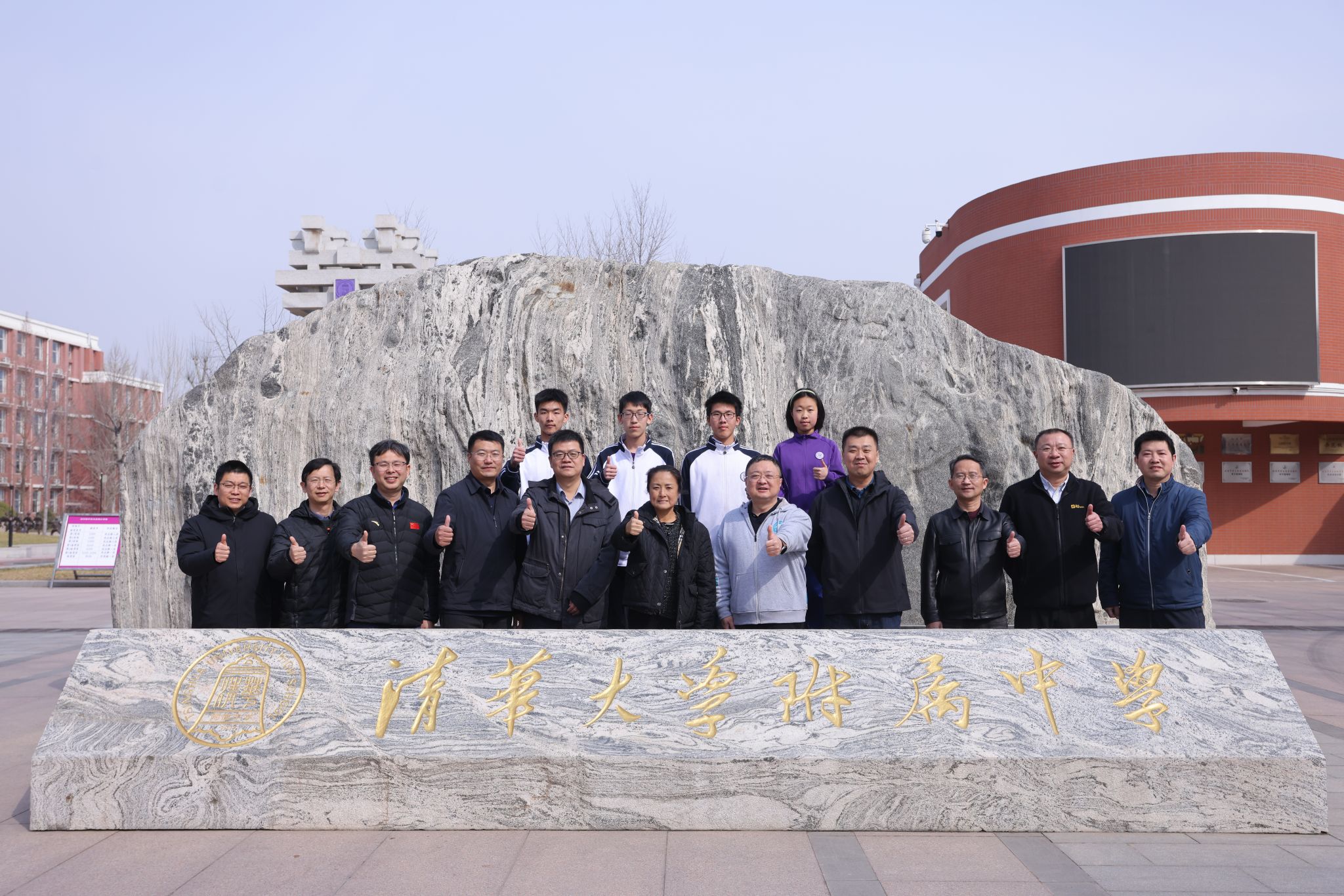 方妍校长与清华大学电机系主任助理胡伟教授共同悬挂捐赠树牌
