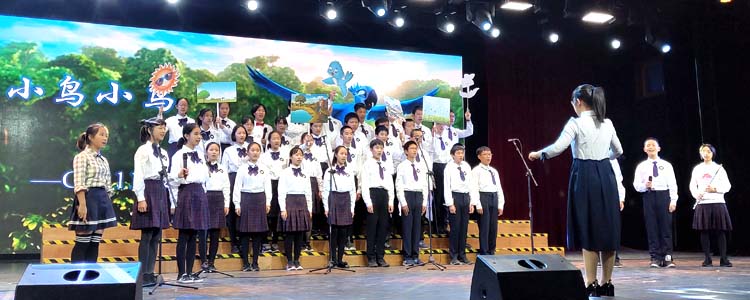 首先,两位主持人以饱满的热情向大家介绍了到场的领导及评委老师。接着,14个班级按照抽签顺序依次演唱。有深情款款的《听妈妈讲那过去的故事》,有斗志昂扬的《红星歌》,有欢快活泼的《歌声与微笑》,更有自己改编的《大海啊,故乡》。各班的演出不仅曲目多样,更有着舞蹈、朗诵、小号伴奏等多种表现形式。异彩纷呈的演出,引来全场阵阵掌声,获得前来观赛的领导和家长的一致好评。