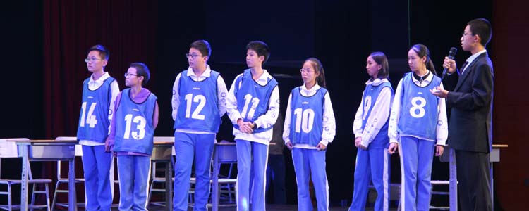 现场展示活动共分为六部分。全年级同学进入报告厅后有序整齐诵读本班代表诗句,拉开了现场活动的序幕。主持人宣布活动第一项——现场默写选手登台开始默写,并由监督员判卷计分。接着进行全年级第一次现场抽号活动,被抽中选手代表班级上台答题,由计分员统一计分。抽号活动的紧张和刺激令同学们激动不已。第三项是朗诵和唱歌节目表演,由分会场改编吟诵组特等奖获得者表演《月下独酌》等。接着是为前期分会场活动中获奖者颁奖,由张伟老师为同学们颁奖。然后进行全年级第二次现场抽号。