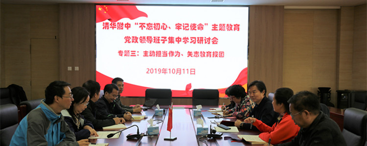 根据清华大学党委的部署,附中“不忘初心、牢记使命”主题教育工作不断深入,专题学习完成第三阶段、调查研究已完成一线调研、志愿服务按计划相继展开,全体党政班子成员、全校党员正用实际行动践行“守初心、担使命,找差距、抓落实”的总要求。