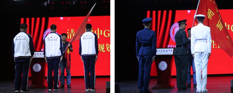 在宣布军训任职决定后,白雪峰副校长向参训教官代表授旗,高19级军训正式拉开序幕。