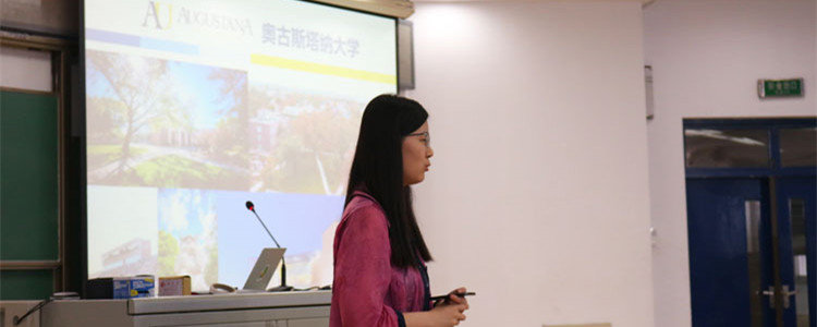 两名在校学生也来到了现场,为同学们分享学习经历。张晗刚刚完成大学一年级的学习,她分享了这一年在学校的学习和生活体验。她还特别制作了一个视频,记录她一年来的学习生活。张晗表示,文理学院规模不大,师生比例很高,有问题都可以直接找到教授答疑解惑。