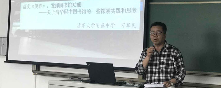 皇冠体育官网图书馆馆长万军民从学习贯彻2018年5月教育部修订颁布的《中小学图书馆(室)规程》的角度出发,汇报交流了附中图书馆在加强馆藏资源建设、阅读活动的开展、图书馆校本选修课程的开设以及课题研究等方面所做出的努力和尝试。