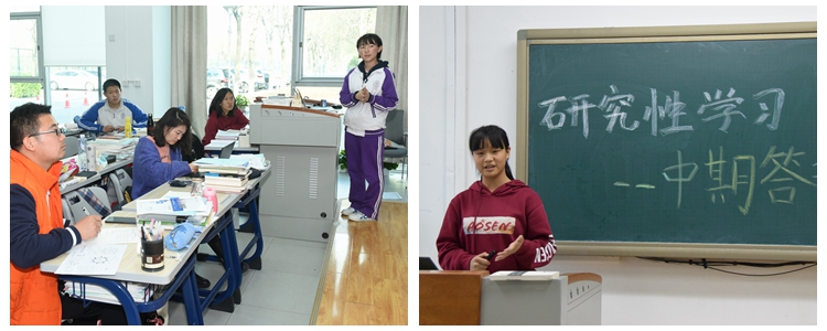 根据学科相近性、每组人数及组数的情况,将所有选题分组。学生们凭着对研学课题的兴趣,在指导教师的带领下,经过近半年的探究,已经进入到项目实施这个重要阶段。各个小组的汇报大致分为以下三个部分,首先是前期对相关文献阅读情况的总结,而后陈述目前阶段取得的成果和存在的问题,最后汇报下一步的研究计划。
