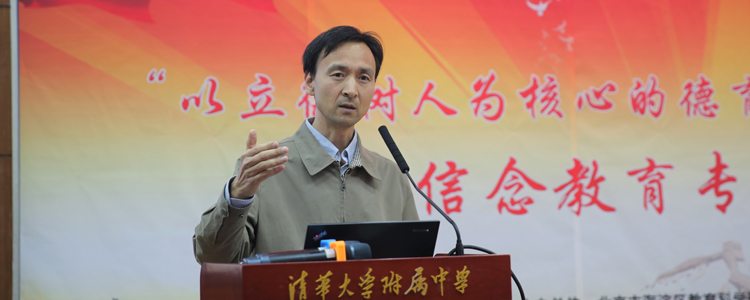 教科院德育群体课题项目负责人陈尧对课题实施情况、尤其是理想信念教育进行了梳理汇报。他首先阐释了课题研究基本思路,指出当前阶段德育工作重点由课题第一阶段的“社会主义核心价值观教育”升华至“理想信念教育”,他以心理学理论与新近发生的新闻热点为切入点,从理想信念的七个维度,即内涵、教育价值、形成机制、形成要素、时代背景、基本原则、着力点等做出具体展开,对理想信念教育做出科学系统的阐释,为课题校推进德育工作提供了新思路。