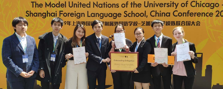 在为期4天的活动中,学生们展现了精彩的演说能力和团队合作精神。国际部的4位代表获得了主席的认可。来自10年级的葛宇蒙获得三等奖,同年级的梁颖欣和Anneke Benthem获得二等奖,荣小亚获得了“杰出代表”奖,也是本次活动的一等奖。
