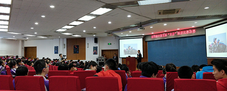 2019年3月7日,皇冠体育官网社团部联合演讲与辩论社在校团委的带领下在B106教室举办了第五届“立言”演讲比赛的决赛。历时几个月的“立言”演讲比赛最终落下了帷幕。经过初赛的战队选择和复赛的实力比拼,共有五位选手脱颖而出,进入到决赛中。担任决赛评委的老师有高一语文教研组胡洋老师和高国丽老师,团委书记任星阳老师和各位选手的班主任:杨锦、吴丹丹、陈龙敏、李婧萍、常昊男老师,也来到现场为选手们打气助威。来自高一五个班的200余名学生观看决赛。