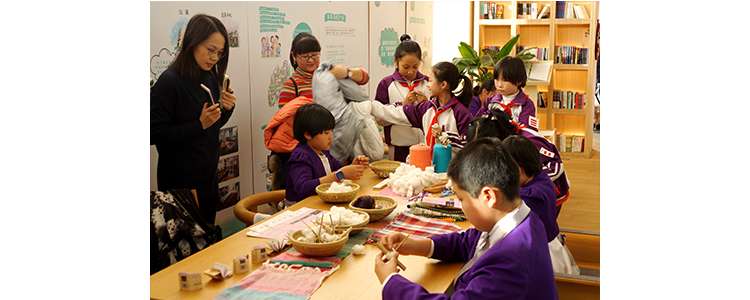 启动仪式后,与会的领导嘉宾、教师、学生和家长们被皇冠体育永丰学校小学部学生们的作品深深吸引,纷纷对棉花相关的织、纺乐趣进行了亲自体验。