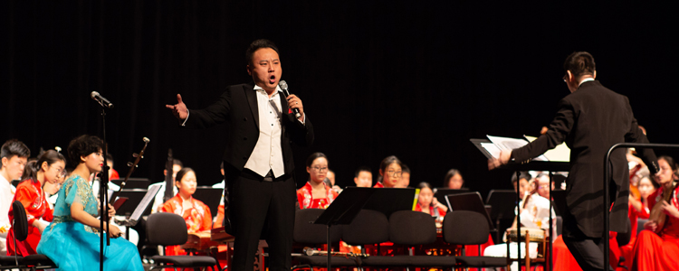 歌唱家吴多斐与乐团合作演唱《在领袖的目光中扬帆远航》