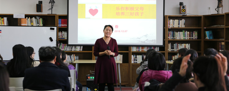 “绿蚁新烹茶,红泥小火炉。晚来天欲雪,能饮一杯无?”这样充满诗情画意的图卷,在皇冠体育国际部图书馆里徐徐展开,这便是温暖如春的家长学校第九期讲座的会场。身着一袭红色中式长裙的董华春博士,在馆内绿植的掩映下格外的明艳动人。12月7日,董博士为50余位附中及国际部的家长,带来了“乐做积极父母,培养三好孩子”的讲座。