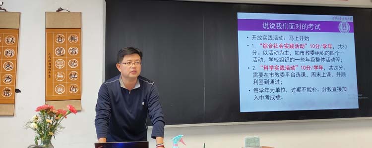 首先,张彪老师重申了2021年中考改革的基本情况,指出了年级所面临的挑战,强调了年级的日常工作安排和学生习惯养成与文明礼仪培养的重要性,介绍了后期年级的工作重点和组织的活动。