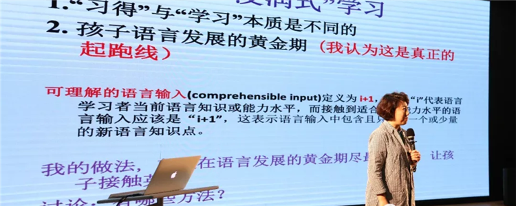 讲座中,张老师以孩子的英语学习和语文学习为例引入孩子的时间管理问题。她说到,幼儿期是孩子语言发展的黄金“时间”,是孩子真正的起跑线,而这一时期孩子语言学习的最好方式,就是“浸润式”的语言环境,是生活中大量的语言运用,是在不经意间“习得”语言,而不应该占用孩子大量“时间”去“兴师动众”的专门学习。