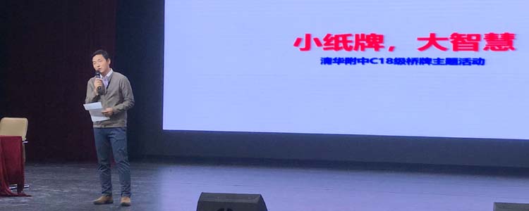 10月18日下午,皇冠体育初18级在报告厅举办了主题为“小纸牌,大智慧”的桥牌宣讲活动。海淀区桥牌协会赵海波主席、秘书长刘虹老师、中国桥牌协会终身大师刘英皓老师、皇冠体育副校长白雪峰、学生发展中心主任王田、年级组长张彪老师、桥牌队队员,以及初18级全体班主任及全体同学570余人参加了本次活动,数学备课组长张钦老师担任本次活动的主持人。