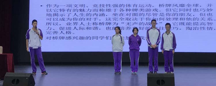 这次活动不仅让初18级同学们了解了很多关于桥牌的知识,也让同学们意识到通过学习桥牌,可以启迪智慧,学会用逻辑思维解决和处理问题的方法。