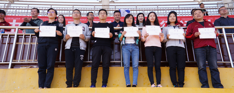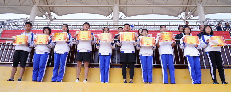 上午11点,所有比赛项目结束,学生发展中心主任张瑜宣布了入场式、宣传、文明观众、广播操、优秀志愿者五项评奖结果;运动会总裁判长周腾宣布了优秀裁判员、优秀志愿者、个人获奖情况和团体获奖情况。校领导为个人和团体获奖师生颁奖。