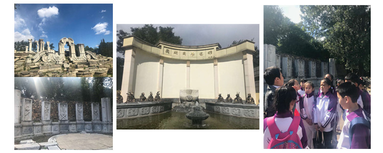 五六年级师生从清华大学直接进入了社会实践活动的第二站——圆明园。圆明园,这个满是青山绿水却又布满断壁残垣的地方,这个承载着百余年历史伤痛的地方,这个令人赞叹不已和令人警醒万分的地方,终于从教科书上走入了现实。