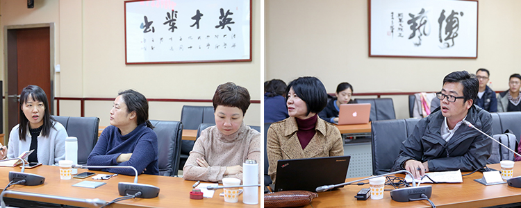 最后,参加研讨会的老师们共同观看已完成录制的示例课程,并就如何有效推进“未来学堂”的课程录制进行了深入讨论,各学科负责人分别阐述了在课程录制中遇到的问题和克服的困难,大家集思广益,共同探讨,力争让每一节课程都达到高质量、高水平!