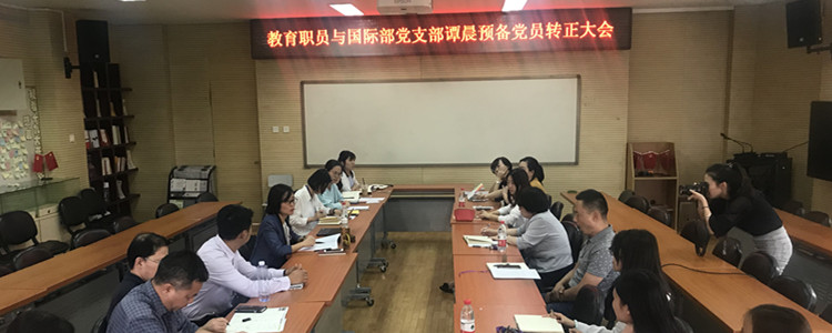 教育职员与国际部党支部在本次组织生活中进行了谭晨预备党员转正大会。